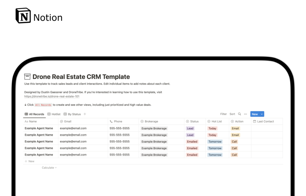 A Notion template that includes the structure to add leads, track calls, and help make sales.